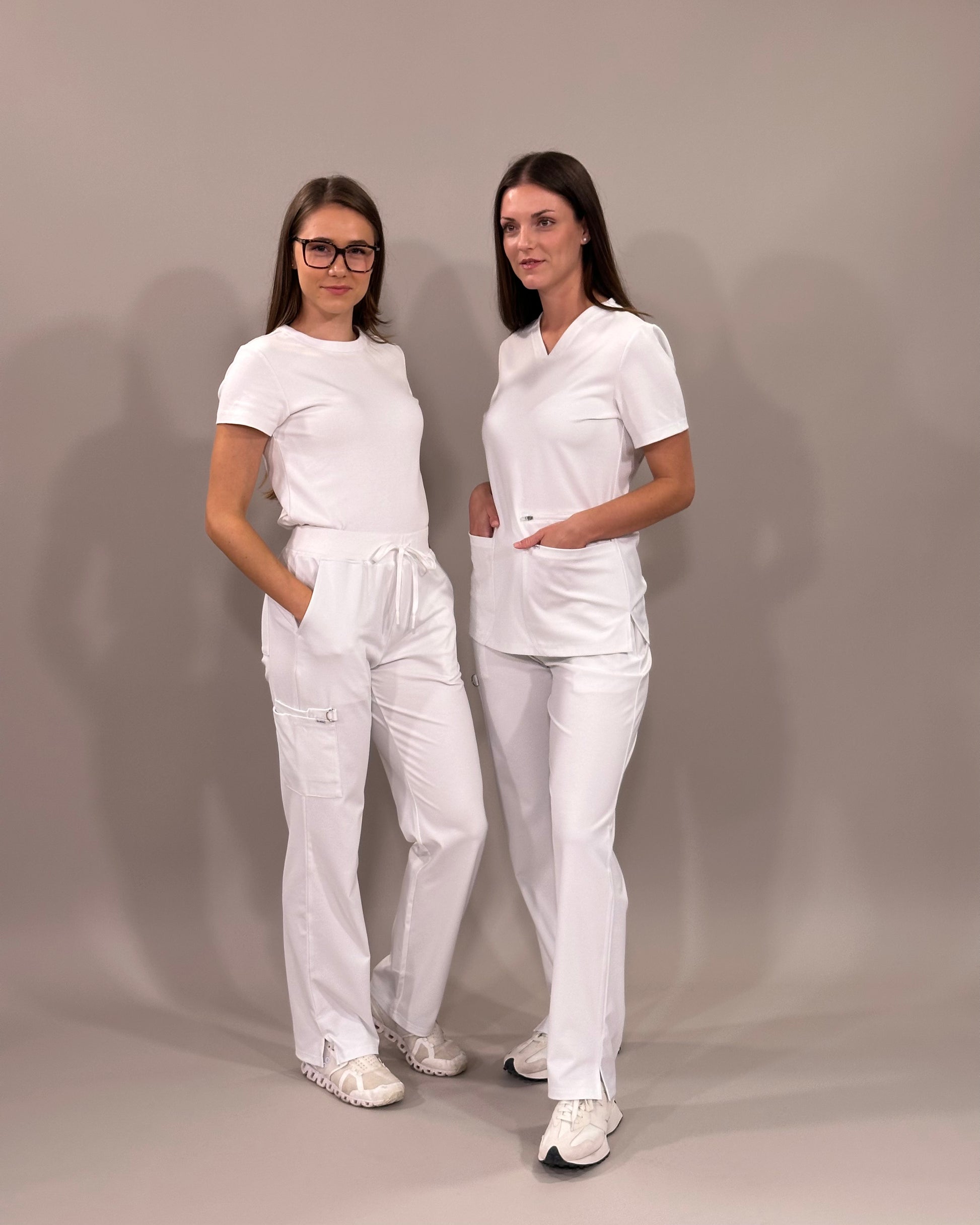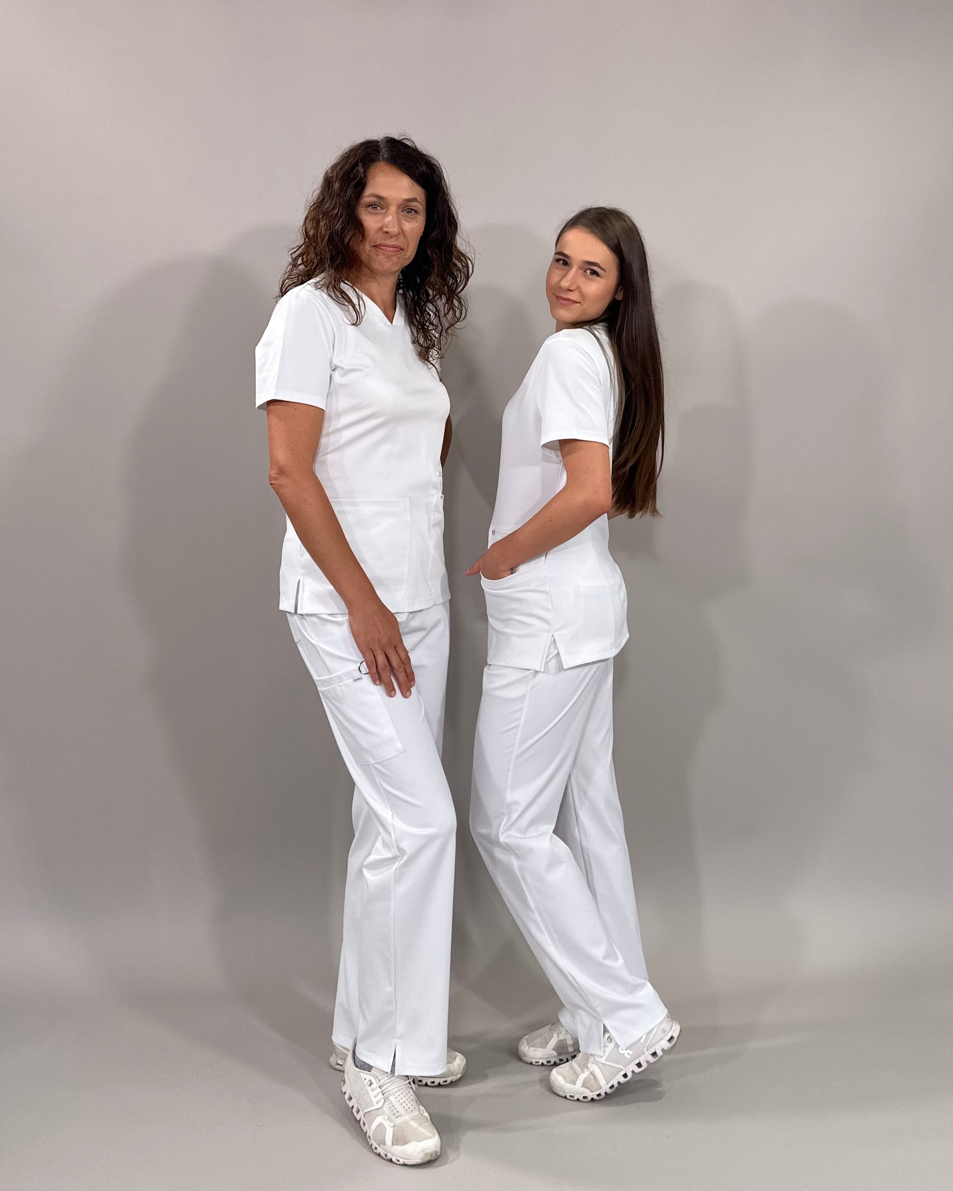 Kombinacija najlona in elastana omogoča raztegljivost v vse smeri in prileganje vašemu telesu. Oblačilo se popolnoma prilagodi vašemu gibanju – naj bo to v ambulanti, na terenu ali med hitrim delovnim tempom. - Lahek, a vzdržljiv